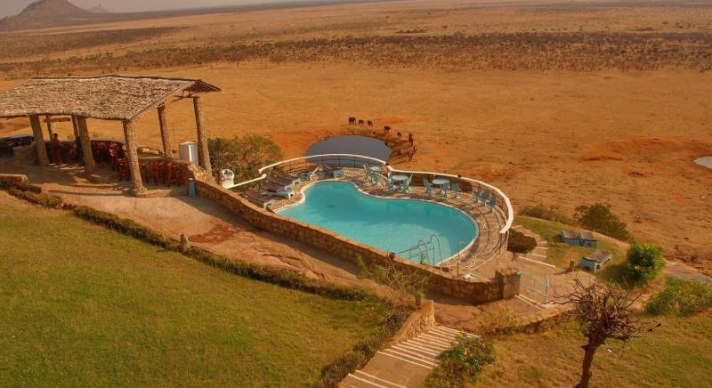 The lodge offers excellent standards of cuisine and comfort, with all fifty of its rooms having a private bath and shower. Built high on a hills side overlooking the Tsavo East National Park is Voi safari lodge one of the most innovatively conceived and constructed wildlife retreats in the whole of Kenya.